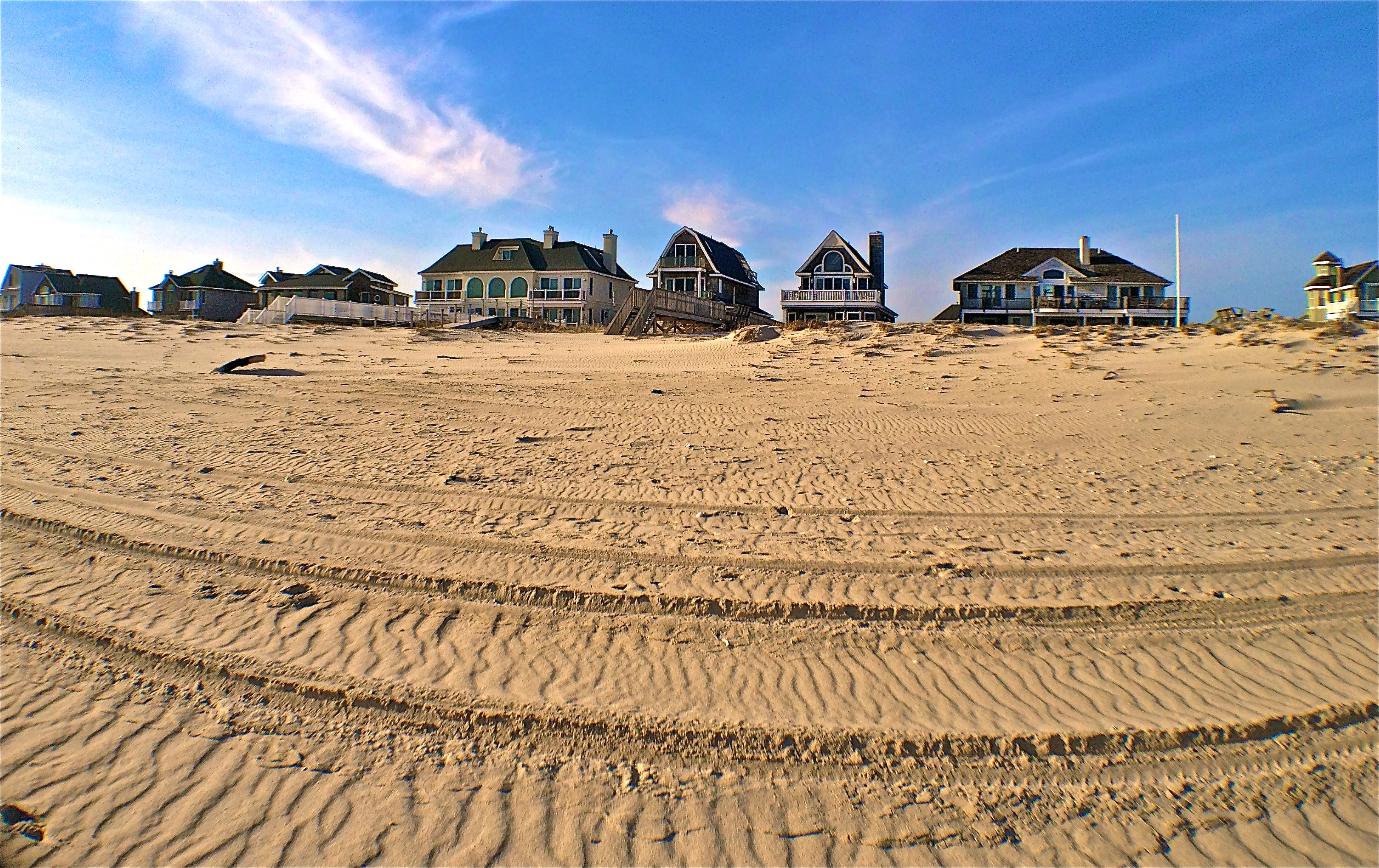 The empty homes along the shore,